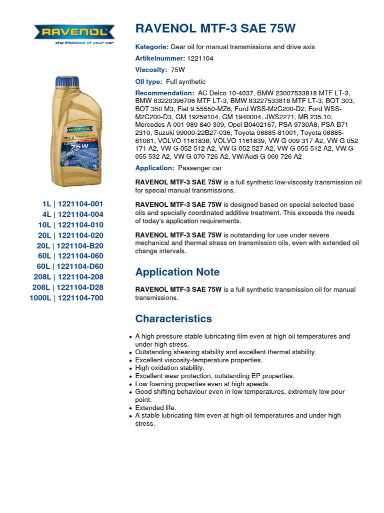 Tds 1221104 en PDF Viscosity Manual Transmission